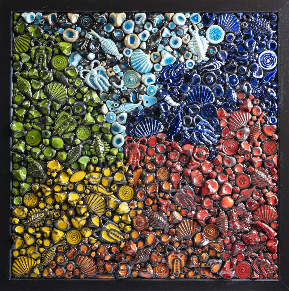 Koleksiyonun eserlerinde; yüzlerce küçük seramik parça bir araya gelerek, kayaçları ve fosil benzeri izleri çağrıştıran yoğun yüzeyler oluşturur. Kimi zaman sert kontrastlarla patlayıcı bir yaşam enerjisini, kimi zaman ise dingin yüzeylerle yaşam öncesi sessizliği hatırlatır. Katmanlı yapılar, parçalanmış ama yeniden bütünleşen bir hafıza gibi, izleyiciyi hem doğanın hem de insanın geçmişine doğru derin bir yolculuğa davet eder.
